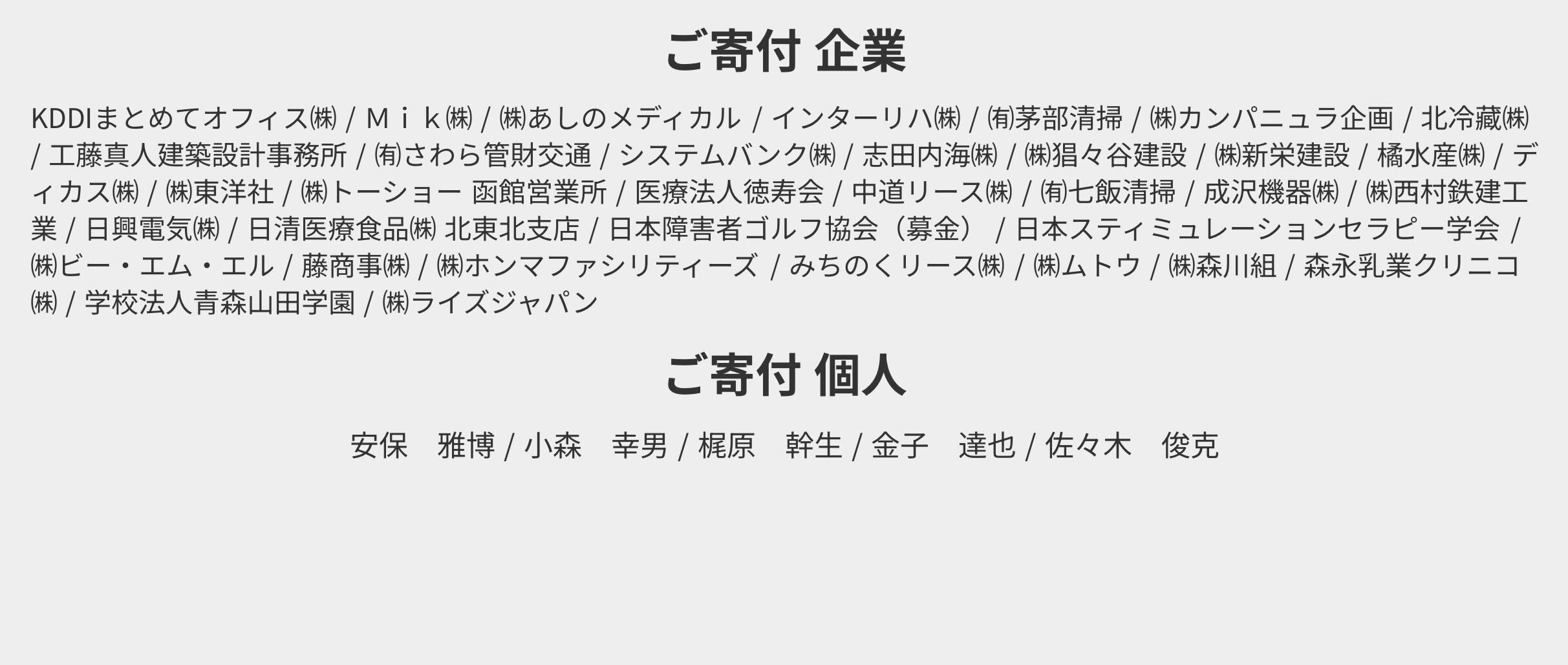 最後になりましたが、この大会を開催するにあたり、先頭に立ってご協力いただきました地元の「医療法人 雄心会」のスタッフの方々をはじめ、スポーツ庁、七飯町、日本リハビリテーション医学学会、日本スティミュレーションセラピー学会などの後援団体、又、沢山のスポンサー企業、個人の皆様に感謝を申し上げて大会の報告と致します。